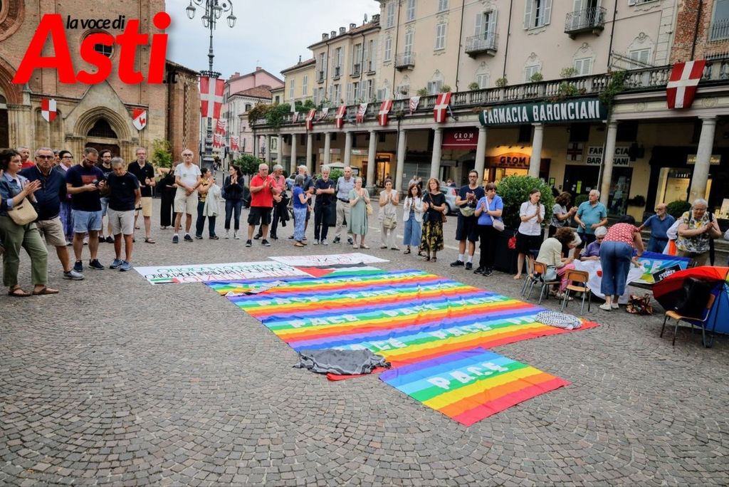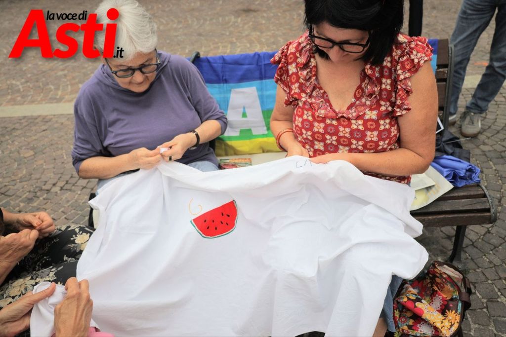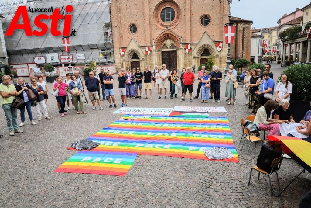 In piazza San Secondo si è svolto un intenso momento di riflessione fatto di gesti simbolici: il ricamo collettivo di un lenzuolo della pace, letture di testimonianze e un silenzio carico di significato che ha coinvolto decine di cittadini astigiani.