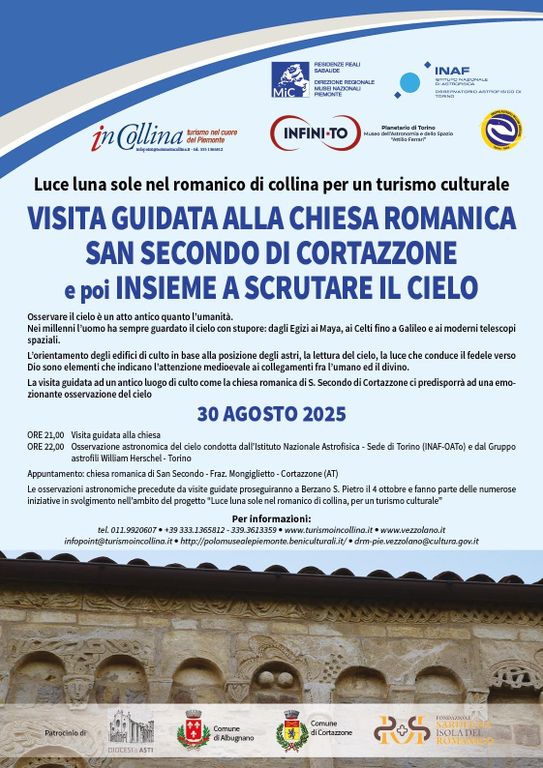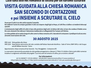 Sabato 30 agosto, la chiesa romanica San Secondo di Cortazzone sarà protagonista di una visita guidata che culminerà nell’osservazione astronomica del cielo.