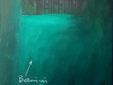 Elemento originale dell’artista è l’uso della superficie dipinta come fosse una lavagna su cui scrivere indicazioni, luoghi o riflessioni. Così una singolare traccia bianca crea un percorso ulteriore in cui avviarsi per seguire la sua impronta creativa.