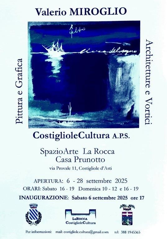 Sabato 6 settembre alle 17, nelle sale di Casa Prunotto ne La Rocca di Costigliole d’Asti, verrà inaugurata la mostra di pittura e grafica “Architetture e vortici” dell’artista Valerio Miroglio.