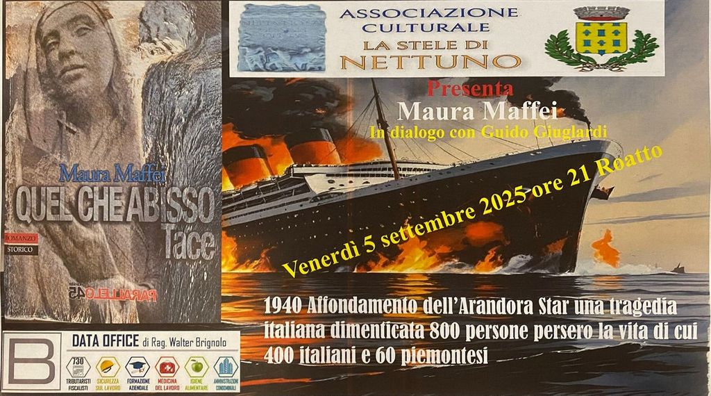 Riprendono le attività dell'associazione culturale "La Stele di Nettuno" che, dopo la pausa estiva e con il patrocinio del Comune, invita la cittadinanza a un incontro di grande valore storico e umano. Venerdì 5 settembre, alle 21, piazza Piemonte ospiterà la presentazione del libro "Quel che abisso tace" della scrittrice Maura Maffei, che dialogherà per l'occasione con Guido Giuglardi.