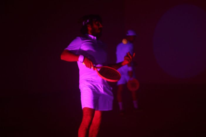 Non si tratta di un semplice spettacolo, ma di una performance transdisciplinare che ridefinisce i confini tra arte, tecnologia e pubblico. Due performer, una parete e delle racchette sono gli elementi di un'installazione interattiva dove ogni colpo della pallina genera una risposta visiva e sonora in tempo reale. Grazie a sensori, microfoni e software, la fisicità del gesto si fonde con il mondo digitale in un crescendo di tensione.