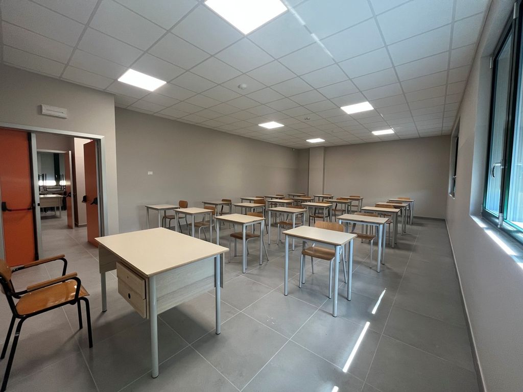 Il nuovo fabbricato, sviluppato su un unico piano, comprende otto aule e laboratori, oltre a servizi igienici e locali di supporto. Ogni ambiente è stato progettato con un’attenzione particolare alla sostenibilità: illuminazione regolabile in base alla luce naturale, riscaldamento a pavimento e impianto fotovoltaico per ridurre i consumi.