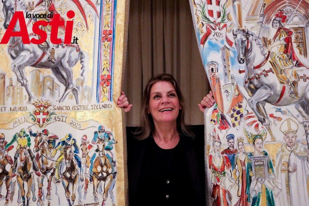 Nata e cresciuta a Santa Maria Nuova, Garramone racconta di aver respirato il Palio fin da bambina, tra tamburi, cavalli e la sede del rione proprio sotto casa. “Il drappo deve essere fatto da un astigiano, qualcuno che ha vissuto la festa”, aveva spiegato in una recente intervista, rivendicando un lavoro che parte dall’astigianità e che diventa naturale prosecuzione della sua ricerca artistica.