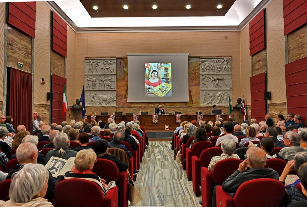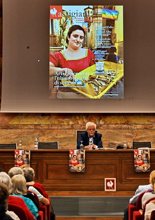 Un Salone della Camera di Commercio di Asti gremito ha accolto mercoledì pomeriggio la presentazione del numero 52 della rivista Astigiani. Dopo i saluti del presidente dell’Associazione Piercarlo Grimaldi, che ha sottolineato l’importanza di sentirsi comunità soprattutto in tempi difficili, il direttore Sergio Miravalle ha mostrato la copertina, scattata da Giulio Morra ad Arti e Mercanti, lanciando un appello per identificare la figurante ritratta.