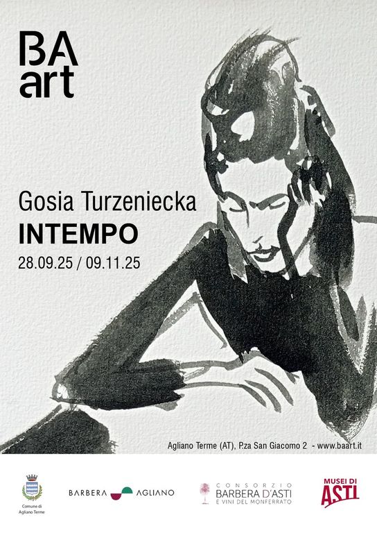 Lo spazio BAart di Agliano Terme si prepara ad accogliere INTEMPO, la mostra che vedrà protagonista l’artista Gosia Turzeniecka dal 28 settembre al 9 novembre 2025. L'esposizione è composta da una selezione di opere, acquerelli su carta di varie dimensioni, che raffigurano la natura, gli animali, i ritratti e rappresentano istantanee di un momento colto dal vivo e fissato come in uno scatto fotografico.