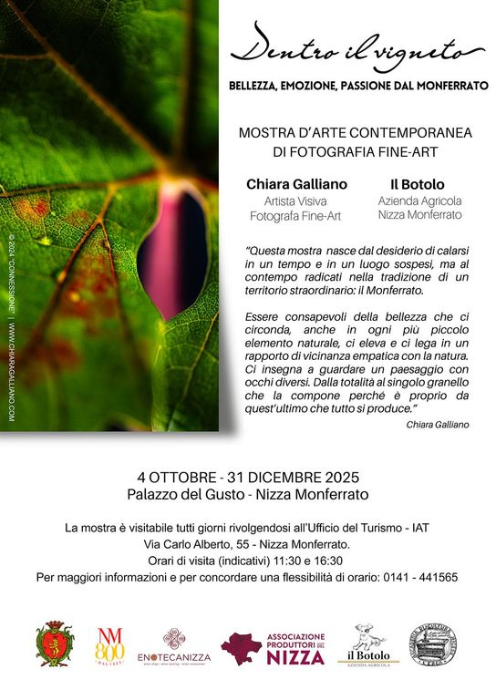 Infine, l’evento prevede uno spazio dedicato all’arte, con la mostra “Dentro il vigneto”, un’iniziativa pensata per raccontare il territorio e il paesaggio con uno sguardo inedito, capace di evocare emozioni e di intrecciare il linguaggio artistico con quello vitivinicolo.