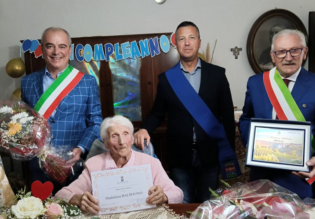 Oggi ospite della RSA Casa Aluffi di Castelnuovo Calcea, Maddalena ha festeggiato il traguardo nella casa di famiglia. A consegnare le pergamene della Provincia, firmate dal presidente Maurizio Rasero, è intervenuto il consigliere delegato all'agricoltura Davide Migliasso, accompagnato dai sindaci di Agliano, Marco Biglia, e dell'assessore di Costigliole, Giuseppe Fiore. I figli ricordano: "Con il prezioso traguardo dei suoi cento anni contribuisce a testimoniare una vita di epoche differenti, sfide complesse, cambiamenti sociali, politici e culturali".