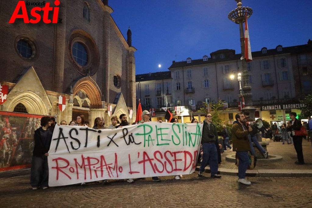 La mobilitazione pro-Palestina cresce rapidamente: la chat WhatsApp "Asti per la Palestina" supera i 1000 utenti in pochi giorni solo con il passaparola. Il corteo in marcia verso l'ospedale