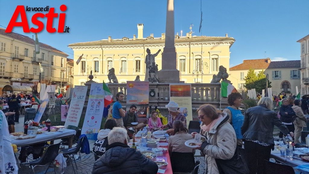 A rendere speciale l’atmosfera è stata la tradizionale merenda sinoira, per la quale tavoli, sedie, tovaglie, piatti e bicchieri sono stati messi a disposizione dagli organizzatori, mentre ogni associazione ha portato i propri cibi e bevande, trasformando la piazza in un mosaico di sapori e storie di altruismo.