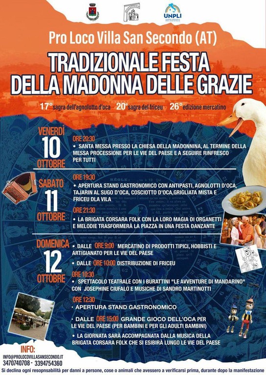 L’evento, organizzato dalla Pro Loco di Villa San Secondo con il patrocinio del Comune e dell’UNPLI, propone tre giornate ricche di iniziative, gastronomia tipica e intrattenimento per tutte le età.