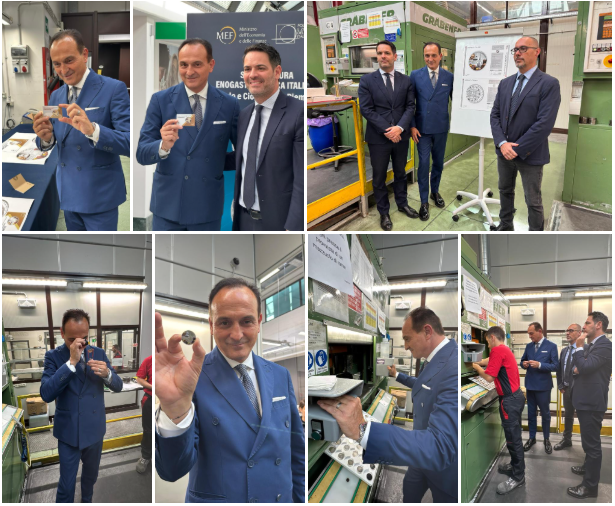 La moneta è stata coniata nelle Officine della Zecca dello Stato, che sono state visitate per l’occasione dal presidente della Regione Piemonte Alberto Cirio. A fare gli onori di casa l’amministratore delegato dell’Istituto Poligrafico e Zecca dello Stato Michele Sciscioli.