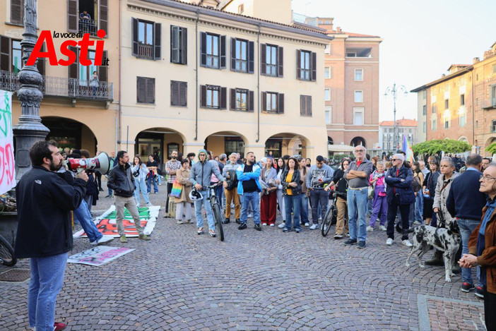"La manifestazione di venerdì che c'è stata ad Asti non si vedeva da anni nei numeri", ha esordito così Mauro Bosia, ieri sera al presidio di piazza Statuto, proprio il giorno in cui è stata firmata la pace del "piano Trump". Il consigliere ha ricordato come una settimana fa le strade del centro di Asti hanno visto scendere tra le 2500 e le 3000 persone.