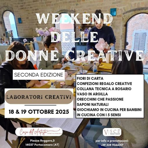 Sabato 18 e domenica 19 ottobre, le porte si aprono alla seconda edizione dei laboratori di Donne creative, un appuntamento che unisce arte, benessere e voglia di condivisione. Due giorni in cui il tempo rallenta, le mani si muovono, la fantasia prende forma e la creatività diventa linguaggio comune.