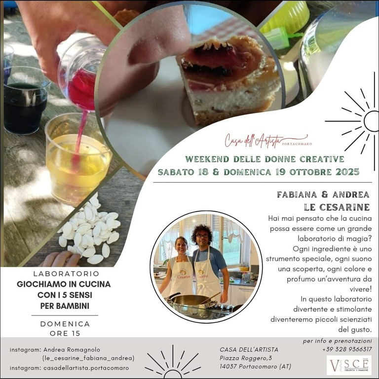Ma non solo. Per i più piccoli, il laboratorio diventa un gioco dei sensi: profumi, colori, sapori e suoni si intrecciano in esperienze culinarie pensate per stimolare curiosità e stupore.