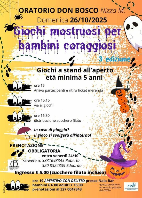 Domenica 26 ottobre, l’Oratorio don Bosco di Nizza Monferrato ospiterà “Giochi mostruosi per bambini coraggiosi”, terza edizione dell’evento dedicato ai più piccoli con giochi a stand all’aperto, pensati per bambini a partire dai 5 anni.