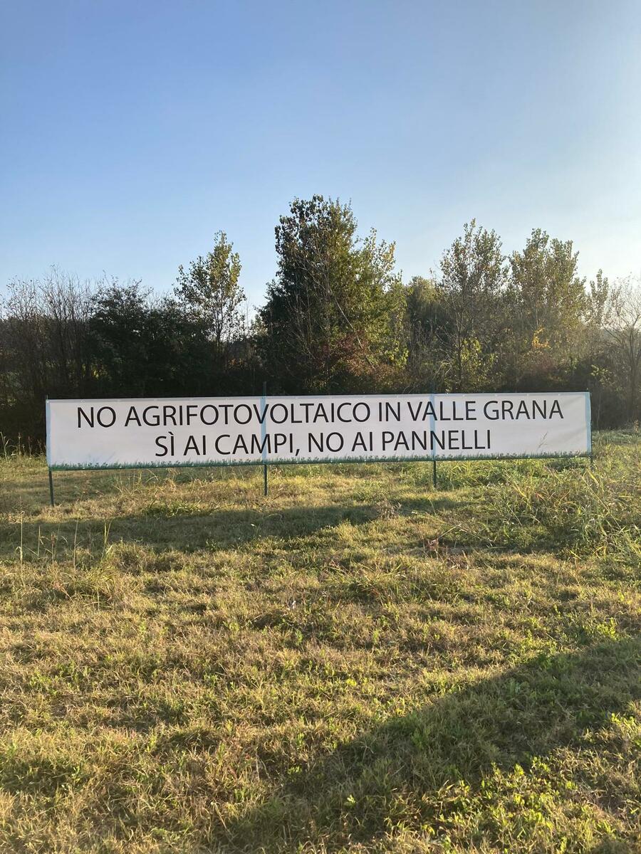 Oggi, a Viarigi, è stato espresso un pensiero in linea con quanto dichiarato dal consigliere Bosia, installando uno striscione di protesta in opposizione alla realizzazione dell'agrivoltaico in Valle Grana, proprio in uno dei punti in cui sorgerà l'impianto.