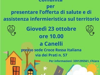 Domani, giovedì 23 ottobre, alle 10, la sede della Croce Rossa Italiana di Canelli ospiterà un importante incontro con gli infermieri di famiglia e comunità per presentare l’offerta di salute e di assistenza infermieristica sul territorio.