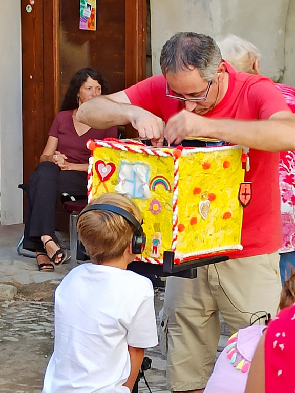 Nella piazza centrale di Monale, la compagnia teatrale del museo presenterà una forma di spettacolo particolarmente suggestiva: i teatri Lambe Lambe. Questi teatrini in miniatura, nati in America Latina negli anni Ottanta del secolo scorso, rappresentano una delle forme più intime e coinvolgenti di teatro di figura.