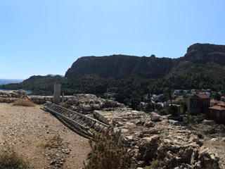 Il pomeriggio dilata i vuoti. Le persiane si socchiudono, il mare cambia gradazione, le facciate delle case rilasciano calore. Si cammina senza una direzione precisa, tra scale ripide, vicoli e cortili nascosti. Kastellorizo è un’opera d’arte urbana che non ha bisogno di pubblico né di applausi. Tra uno scorcio e un balcone fiorito affiora la sagoma del Castello dei Cavalieri, eretto anticamente per controllare la baia. È una sentinella di pietra, memoria di quando questo lembo del Dodecaneso era presidio e frontiera prima che rifugio. Oggi non reclama sguardi, ma li cattura: ricorda, sottovoce, che anche questo luogo ha avuto bisogno di difesa. La vista si apre sull’intera insenatura. Dall’alto il disegno si ricompone: molo, scogli, barche ormeggiate e una linea tesa verso la Turchia, così vicina da sembrare toccabile. Poco oltre, un sentiero conduce alla cappella di San Giorgio, bianca e raccolta, affacciata sull’acqua. È una sosta breve, un invito a prendere fiato.
