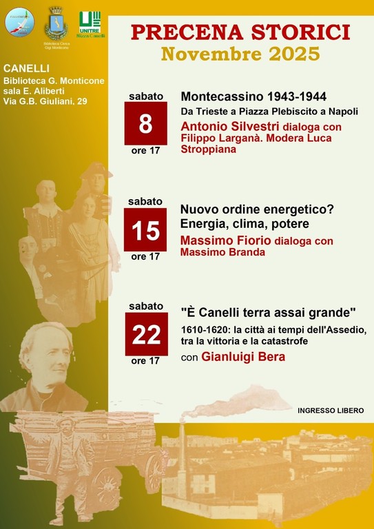 Questo sarà il primo appuntamento della quarta edizione dei Precena Storici, tre incontri organizzati da Memoria Viva Canelli in collaborazione con la Biblioteca G. Monticone e l'Unitre Nizza-Canelli.