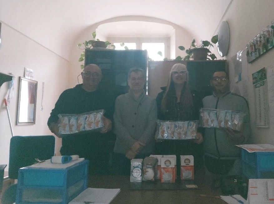Ad accoglierla, come di consueto, il responsabile della struttura Roberto Zanna, affiancato da due collaboratori. La consegna simbolica dei prodotti per la prima colazione è stato un momento di condivisione e di vicinanza concreta.