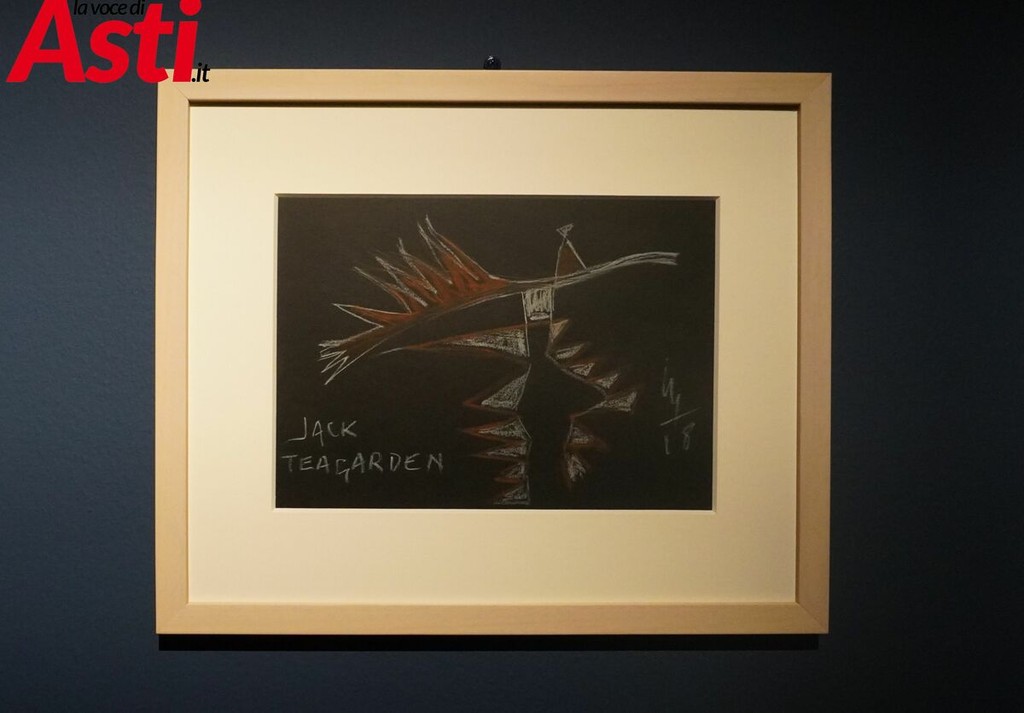 Il percorso espositivo, definito sotto la guida dello stesso Conte, spazia tra tecniche e soggetti diversi. Tra le opere più significative spicca Higginbotham del 1957, un omaggio a tempera e inchiostro a uno dei primi grandi trombonisti jazz.