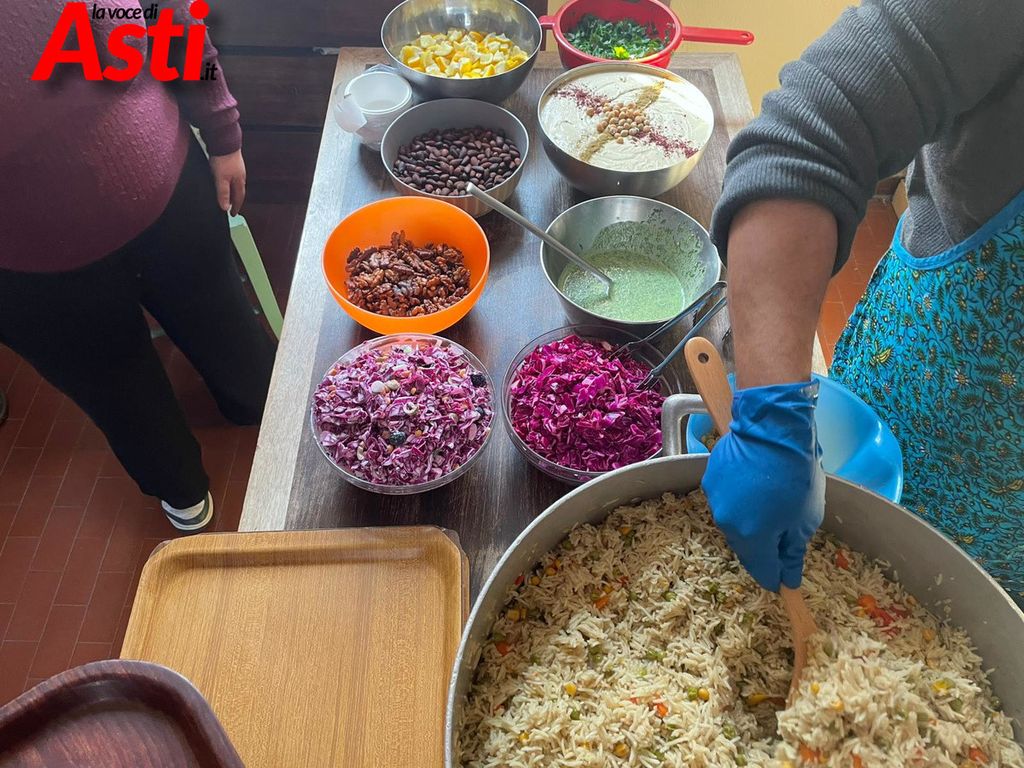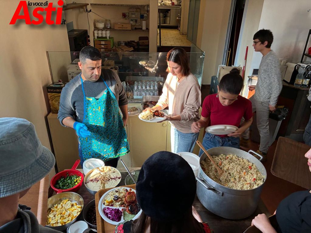 Da ieri, con l’aiuto di alcune ragazze e ragazzi volontari, Fadi si è dedicato ai preparativi per i novanta partecipanti del pranzo di oggi. Nonostante la difficoltà nel dialogare con lui in italiano – lingua comprensibilmente ancora da lui poco conosciuta – l’ausilio di un traduttore ha permesso di godere della sua simpatia e diligenza e di creare un’ottima squadra: da addetti al taglio delle verdure, ai fornelli, impiattamenti e servizio al tavolo. Insalata di cavolo, riso ouzi e moussaka sono state le pietanze proposte e apprezzate dai partecipanti, che hanno rivolto un grande applauso a Fadi e ai ragazzi coinvolti.