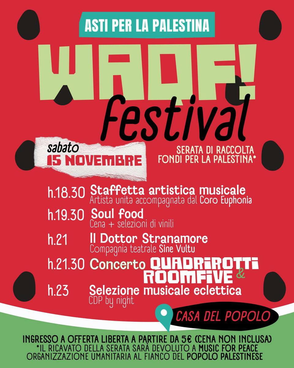 Continua l’impegno della Casa del Popolo a favore della causa palestinese, questa volta con una serata ricca di cultura. WAQF! Festival è il nome scelto per l’evento che avverrà sabato 15 novembre.