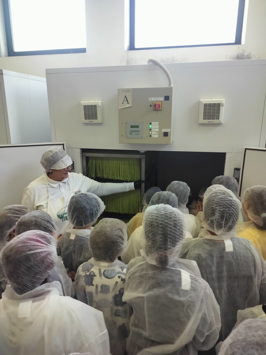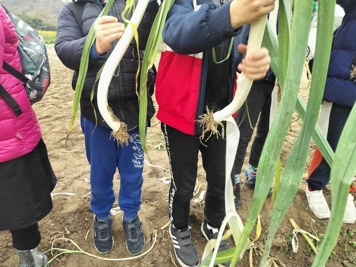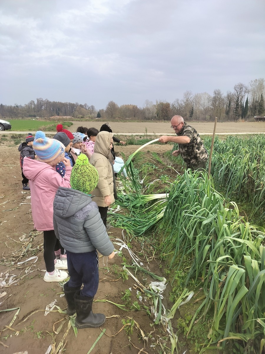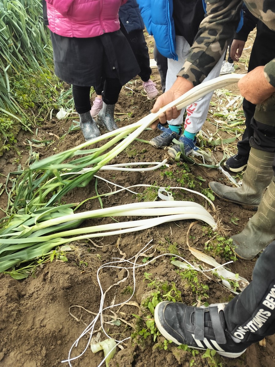 Giovedì 13 novembre le classi quarte e quinte hanno visitato l’azienda Ferrari Specialità Alimentari di Milanesio Daniela, a Roreto di Cherasco. Qui i bambini hanno scoperto come il Porro Cervere venga trasformato nelle produzioni gastronomiche locali: il personale ha mostrato le fasi di lavorazione e illustrato l’utilizzo sia della parte bianca sia delle foglie verdi, spesso scartate, ad esempio per la preparazione dei tajarin verdi. Un primo passo per comprendere il valore economico e identitario che una coltura può generare quando viene trasformata e comunicata nel modo giusto.