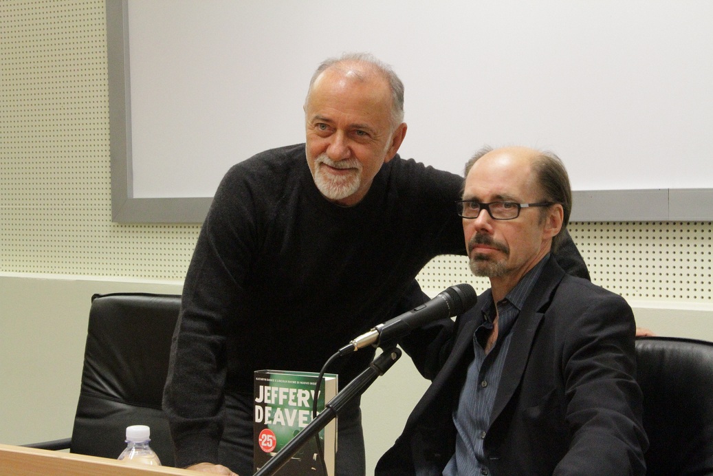 Il pubblico italiano lo ha prima amato come cabarettista, dai palchi fumosi del Derby di Milano fino alla consacrazione televisiva con personaggi iconici nel "Drive In". Poi lo ha scoperto cantante e paroliere raffinato, capace di scrivere testi indimenticabili per giganti come Mina, Angelo Branduardi e Milva, oltre che in veste di interprete di brano iconici come "Signor tenente". Infine, l'ulteriore svolta che ha sorpreso tutti: la sua seconda vita da scrittore di bestseller di caratura internazionale, con milioni di copie vendute nel mondo, al punto da guadagnarsi la stima pubblica di maestri del thriller come Jeffery Deaver (nella foto ritratto con Faletti durante un incontro presso l'aula magna del polo universitario), che ora contribuisce all'antologia con un ricordo.