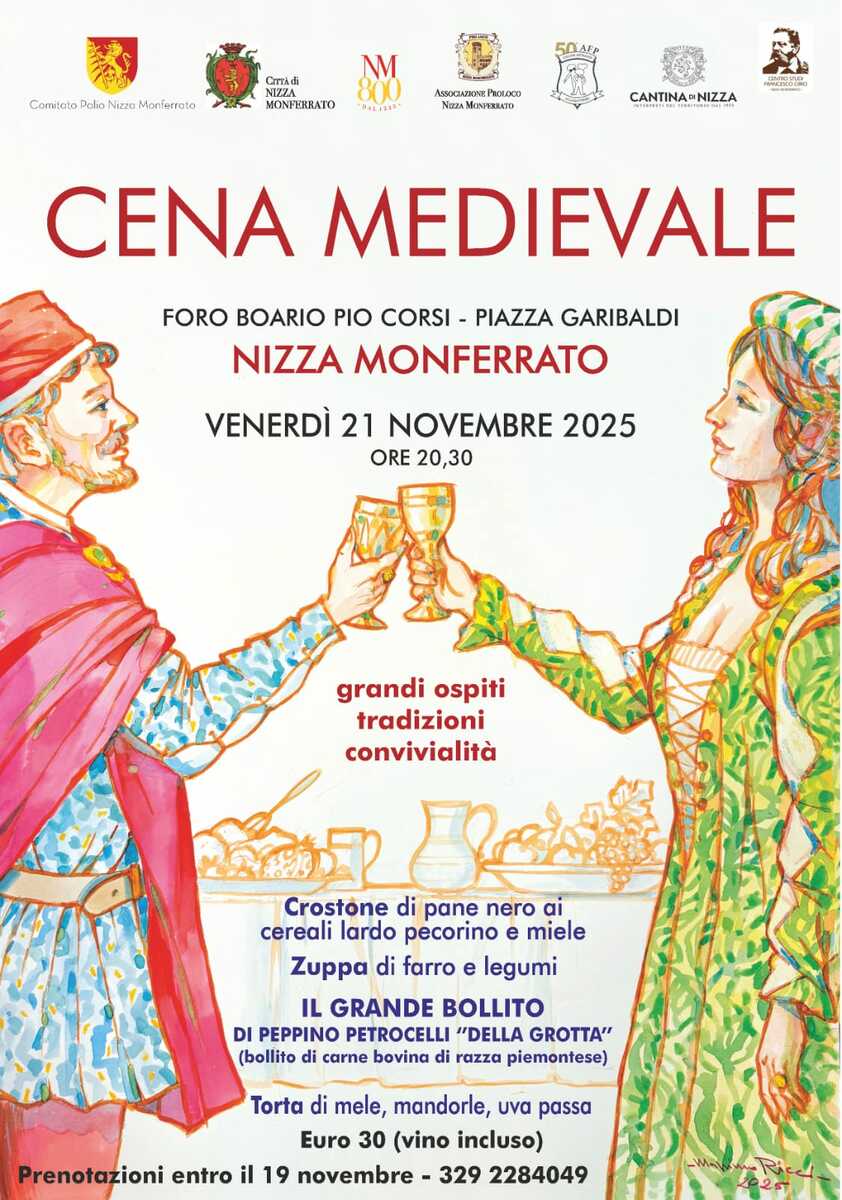Venerdì 21 novembre, il Comitato Palio di Nizza Monferrato proporrà una serata all’insegna degli ottocento anni dalla fondazione della città, occasione per arricchire le conoscenze legate al periodo storico tra figuranti e convivialità. Da questa proposta prende forma la “Cena medievale”, ospitata al foro boario Pio Corsi di piazza Garibaldi.