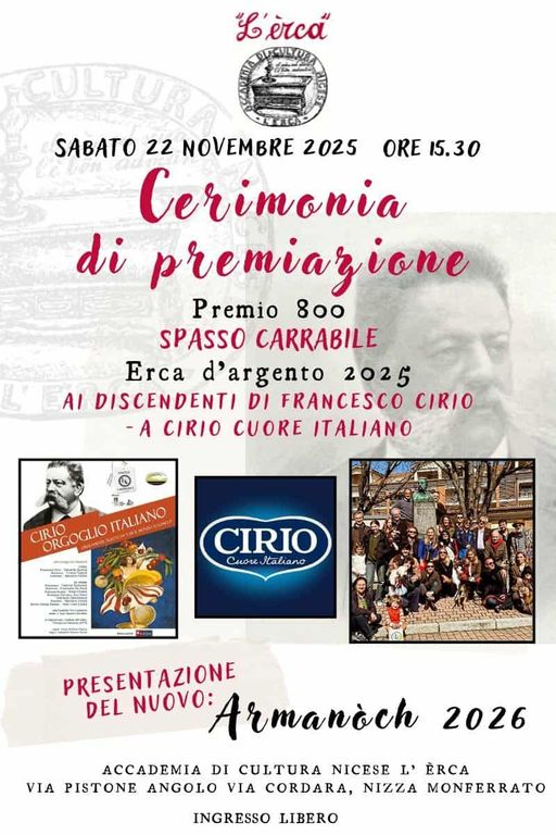 Nel corso della settimana che si è appena aperta sono attesi ulteriori momenti dedicati alla tradizione e a figure di spicco, dalla consegna delle “Erca d’Argento” e del premio “Ottocento” al ricordo di Francesco Cirio.