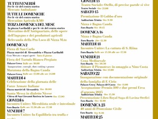 “Sabato 22, la giornata sarà improntata al nostro cittadino più famoso, Francesco Cirio”, ha annunciato il vicepresidente dell’Erca e presidente del Consiglio comunale Maurizio Martino. Infatti, alle 11, presso il Palazzo del Gusto, una ventina di discendenti romani di questo storico personaggio nicese donerà alla città importanti documenti legati all’azienda e alla storia della famiglia. Tra questi, alcuni saranno collocati in una teca, mentre una parte sarà conservata negli archivi storici del Comune.