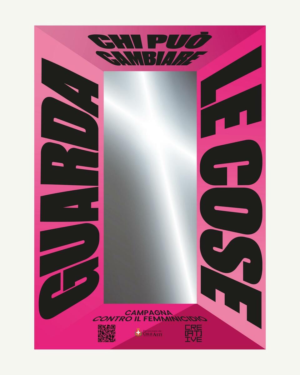 Accanto all’allestimento luministico, l’associazione ha presentato anche la nuova campagna di sensibilizzazione contro il femminicidio, realizzata in collaborazione con Studio Uovo. È un manifesto che sta già richiamando l’attenzione in città. “Volevamo immagini che raccontassero il problema, ma poi è nata l’idea dello specchio: così chi guarda diventa subito parte del messaggio”, racconta Bellesini, spiegando come lo sguardo di chi si riflette diventi esso stesso un atto di consapevolezza.