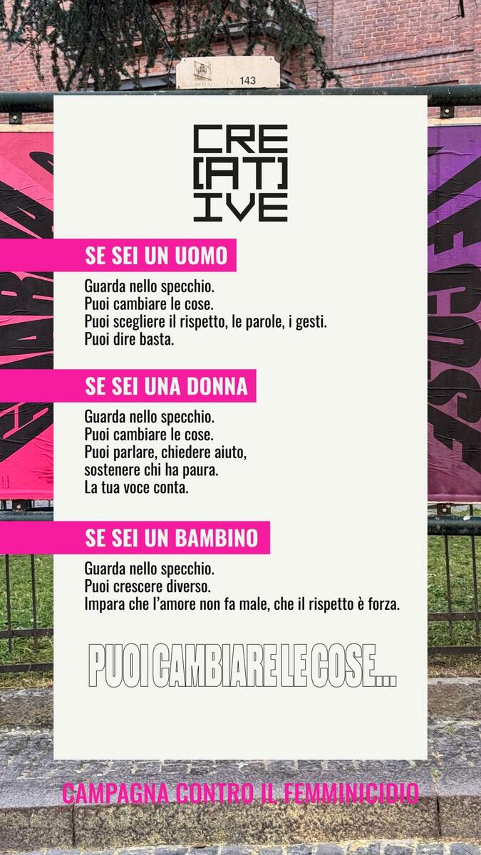Un modo diverso, diretto, personale per ricordare il 25 novembre, nel solco di un impegno che le Creative portano avanti da anni con incontri, progetti e iniziative.