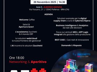 Giovedì 20 novembre 2025, dalle 14.30, l’Albergo dell’Agenzia di Pollenzo (Bra, CN) ospiterà “AI ❤️ ERP – L’innovazione che fa battere il cuore del tuo business”, l’evento dedicato al ruolo dell’AI nei sistemi ERP Zucchetti e nelle strategie di digitalizzazione delle imprese italiane.