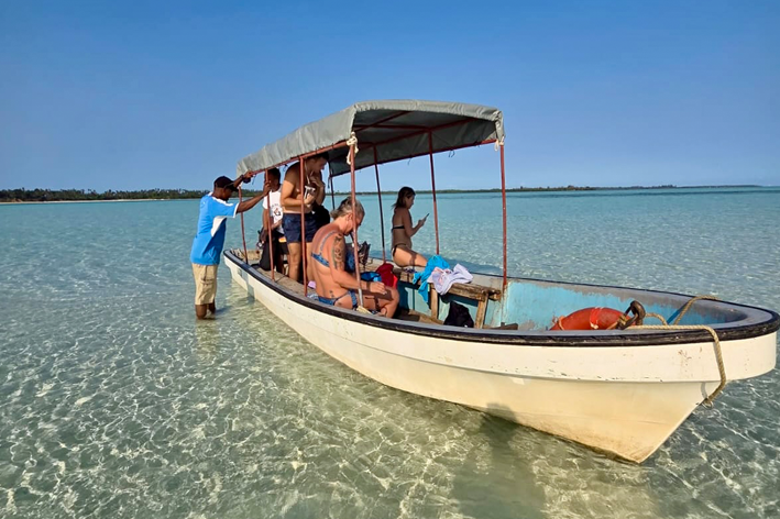 L’ultima sorpresa di Pemba è Sandbank, una lingua di sabbia che emerge in mezzo all’oceano e scompare con il gioco delle maree. Per raggiungerla, però, non tutto fila liscio. La barca tardava ad arrivare, e noi siamo rimasti bloccati in un campo in compagnia di un pastore e delle sue mucche, con il dubbio che non saremmo potuti partire. Una scena quasi surreale: il mare davanti, gli animali al nostro fianco, e l’incertezza di dover forse tornare a piedi dall’altra parte dell’isola. Il tempo passava, tra risate nervose e chiacchiere per sdrammatizzare, finché finalmente all’orizzonte è comparsa la barca. La traversata si è trasformata così in un piccolo trionfo. Il momento più divertente è stato quando alcuni di noi si sono messi a correre lungo la lingua di sabbia, con l’acqua che lambiva i piedi e l’orizzonte aperto tutt’intorno. Sandbank non era più solo uno spettacolo naturale, ma un frammento di gioia pura, concesso dalla marea.