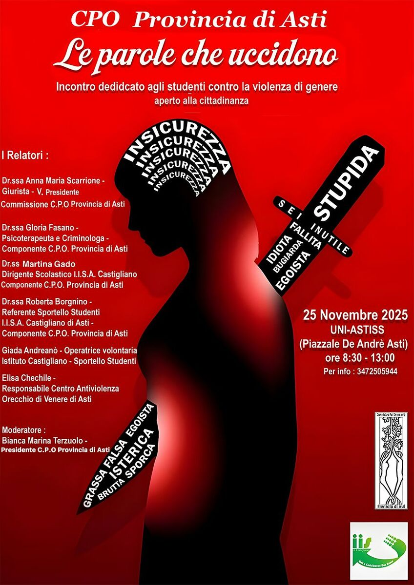 Un linguaggio che ferisce, isola e costruisce muri invalicabili. È su questo tema delicato e cruciale che la Commissione pari opportunità della Provincia di Asti ha deciso di accendere i riflettori in occasione della Giornata internazionale per l’eliminazione della violenza contro le donne. L’evento, intitolato "Le parole che uccidono", si propone come un momento di profonda riflessione sulla violenza verbale e psicologica, spesso l’anticamera invisibile di abusi fisici più evidenti.