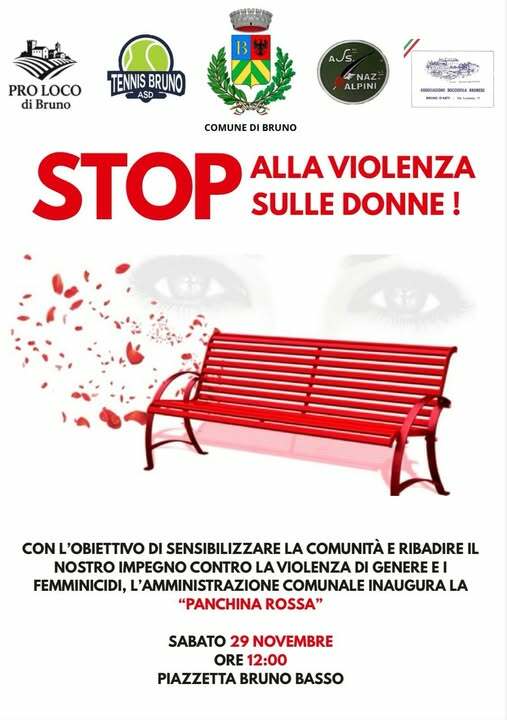 Il Comune di Bruno, insieme alle associazioni del paese, inaugurerà la “Panchina rossa” con l’obiettivo di sensibilizzare tutta la comunità e ribadire l’impegno contro la violenza di genere e i femminicidi.