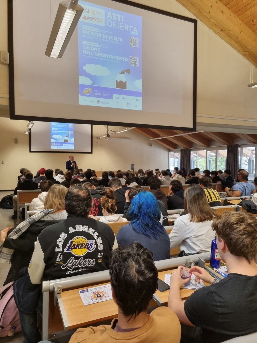 Il Polo Universitario Rita Levi Montalcini di Asti ha ospitato nei giorni scorsi la seconda e conclusiva tappa di "Asti Orienta 2025", il "Salone dell'Orientamento: al cuore della scelta post diploma". Dalle 9 alle 14, oltre mille studenti delle scuole secondarie di secondo grado di Asti e provincia hanno affollato aule e corridoi della struttura, dialogando con università, agenzie di formazione professionale, accademie, Its, forze dell'ordine ed enti militari sulla vasta panoramica di opportunità che si aprono dopo il diploma.