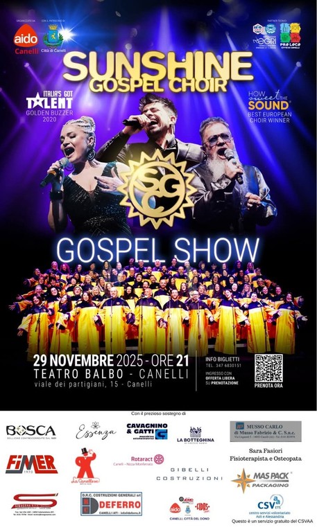 Sabato 29 novembre 2025, alle ore 21, il Teatro Balbo di Canelli ospiterà una serata all’insegna della musica e della solidarietà, con il ritorno del Sunshine Gospel Choir, formazione corale tra le più apprezzate sul territorio nazionale.