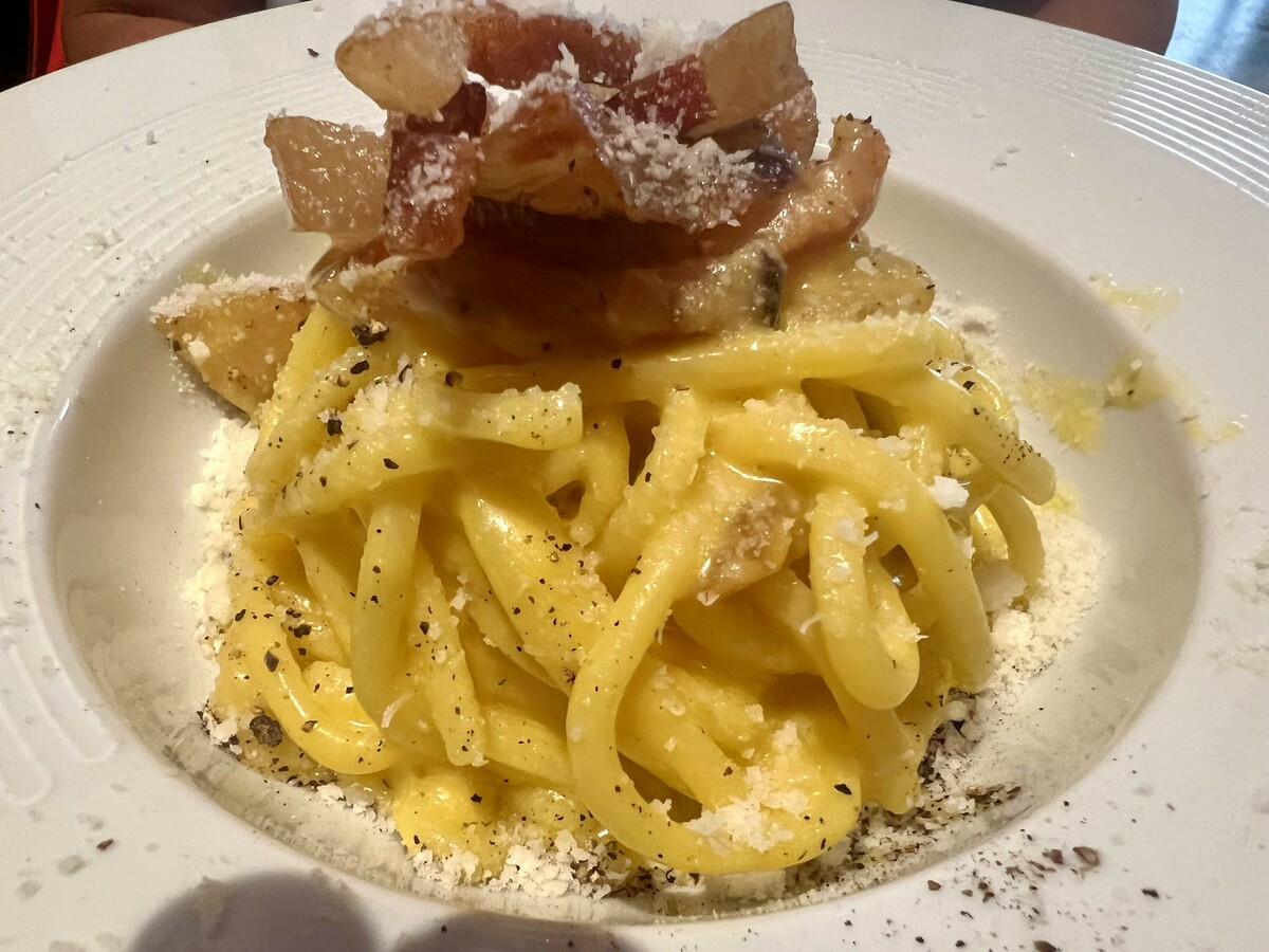 Ed è su questa strada che, non senza una certa sorpresa, mi sono venuti incontro degli ottimi Tonnarelli alla carbonara, perfettamente eseguiti e mantecati in modo da rendere l’insieme suadente e avvolgente.
