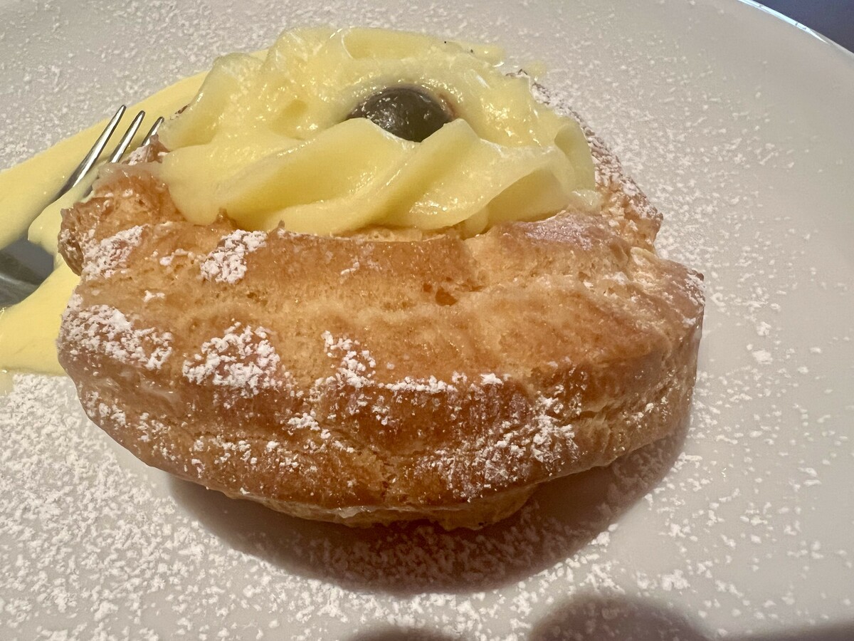 valorizzate da una panatura soffice e fragrante in grado di lasciare emergere la qualità del pesce e l’abilità di chi lo ha cucinato. Soddisfatto per il buon pranzo chiudo con una Zeppola di San Giuseppe che, pur complessivamente buona, sarebbe forse risultata migliore se la crema pasticciera non fosse risultata troppo densa.