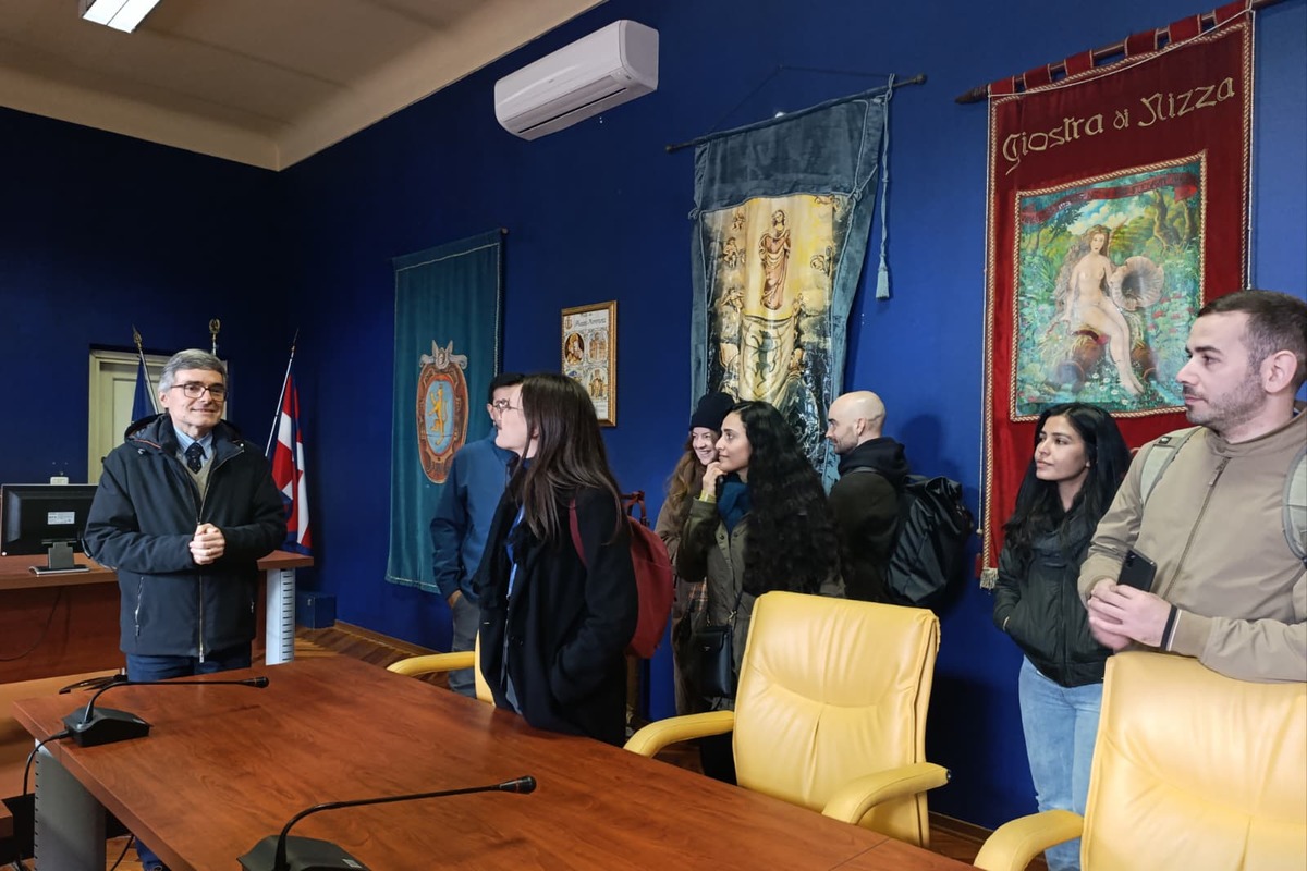 Il tour è iniziato sotto al porticato del Comune, nella sezione dedicata all’alluvione del ‘94, per poi proseguire all’interno dell’edificio, attraverso un percorso culminato con la visita alla Sala delle Stelle e alla Sala Invernizzi, in cui si tiene il Consiglio comunale.