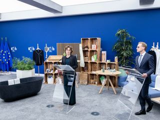 Come anticipato, la sala-conferenze a Bruxelles è stata arredata con prodotti bio-based di uso quotidiano. Dal salotto alla cucina, fino al bagno, giornalisti e ospiti hanno potuto toccare con mano capi d’abbigliamento, articoli per la cura personale, prodotti per la casa e accessori realizzati con materiali sostenibili. E molti di questi erano realizzati in Italia.
