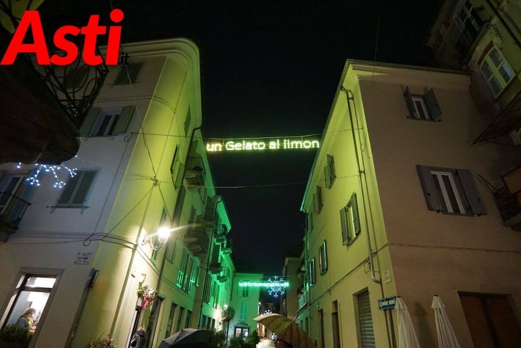 Per la prima volta ma col desiderio di rinnovarlo e arricchirlo, porterà nel periodo dicembre 2025-gennaio 2026 un’installazione di scritte luminose sospese dedicate a tre voci simbolo della città: “Minchia signor Tenente” di Giorgio Faletti in via Bruno, “Gelato al limon” di Paolo Conte in via Garetti, e “Volli, fortissimamente volli” di Vittorio Alfieri sempre in via Garetti.
