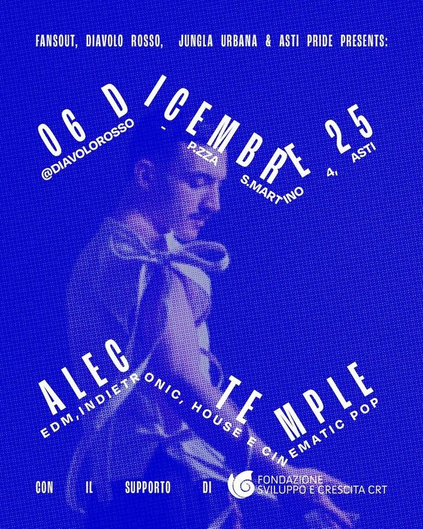 Cambio di registro alle 21.30, quando il palco verrà ceduto alla musica dal vivo. Protagonista della seconda parte della serata sarà Alec Temple, cantautore cremonese che sta facendo parlare di sé per la sua capacità di fondere una voce limpida con sonorità EDM, house e indietronic.
