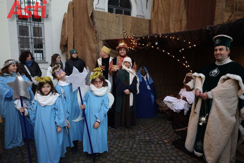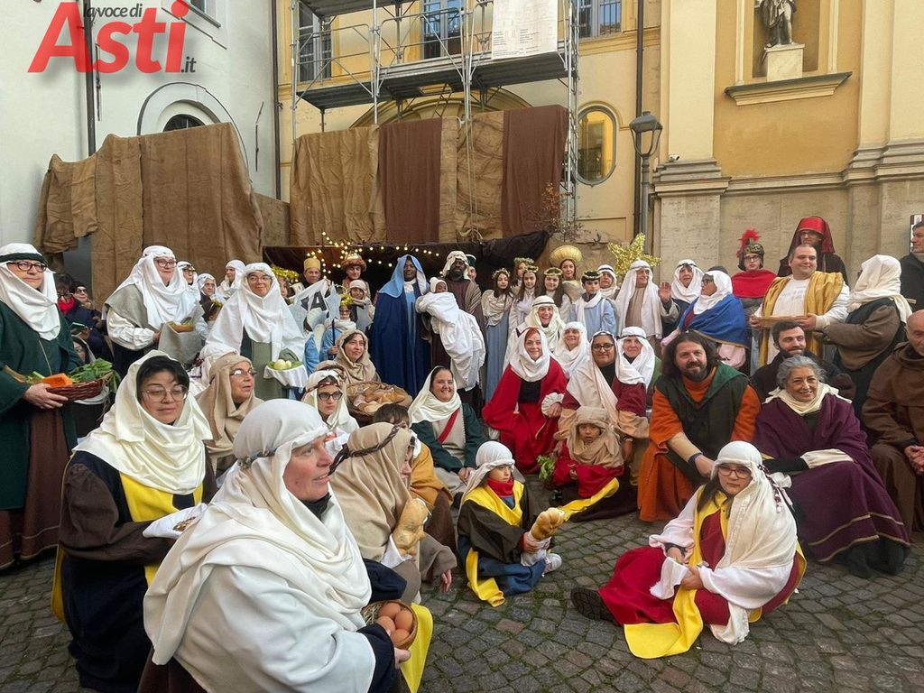 Oggi, domenica 7 dicembre il centro storico di Asti si è trasformato in un grande palcoscenico della tradizione natalizia grazie al Presepe vivente cittadino, dal titolo Il racconto della Natività in cammino nel cuore di Asti”, organizzato dalla parrocchia di San Martino con il patrocinio del Comune di Asti. Un evento che ogni anno richiama cittadini e visitatori, unendo spiritualità e folklore in una cornice suggestiva.