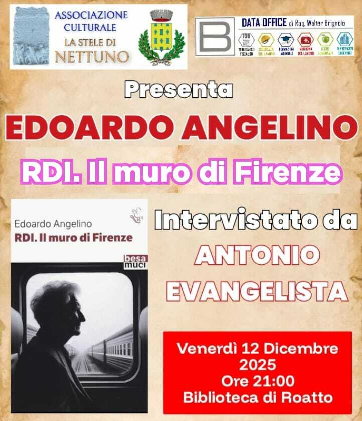 Immaginate un'Italia spaccata in due, non metaforicamente, ma da un confine politico invalicabile simile a quello che ha diviso la Germania per decenni. È questo lo scenario inquietante e affascinante al centro di RDI. Il muro di Firenze, il nuovo romanzo di Edoardo Angelino che sarà presentato questa sera venerdì 12 dicembre a Roatto. L’appuntamento, organizzato dall’associazione culturale “La Stele di Nettuno” con il patrocinio del Comune, si terrà alle 21 presso la biblioteca in piazza Piemonte.